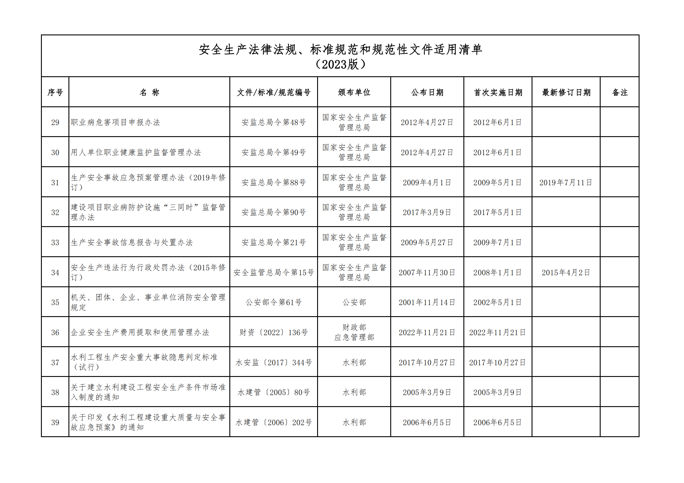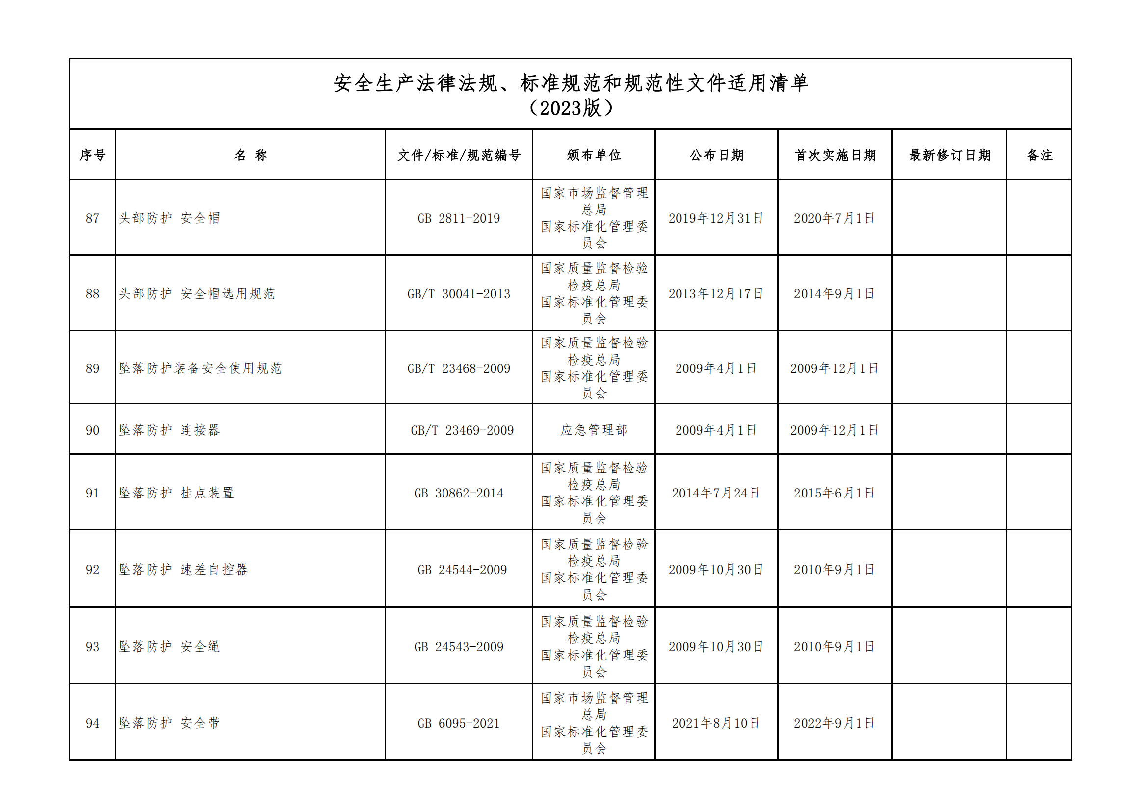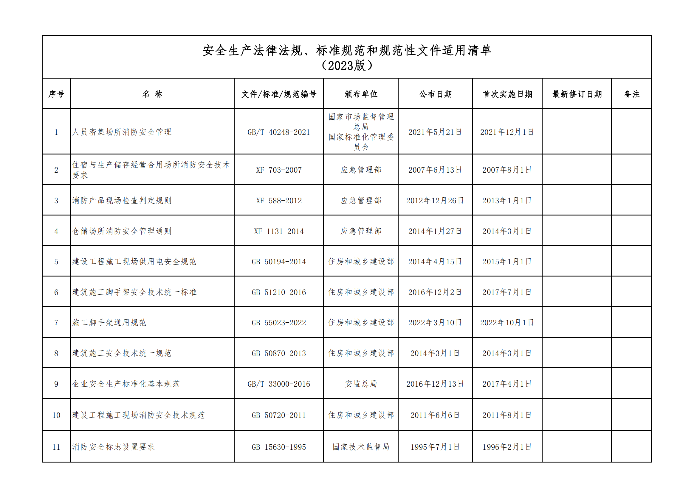 安全生產(chǎn)法律法規(guī)、標(biāo)準(zhǔn)規(guī)范和規(guī)范性文件適用清單