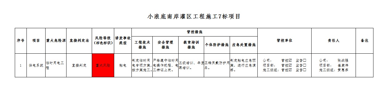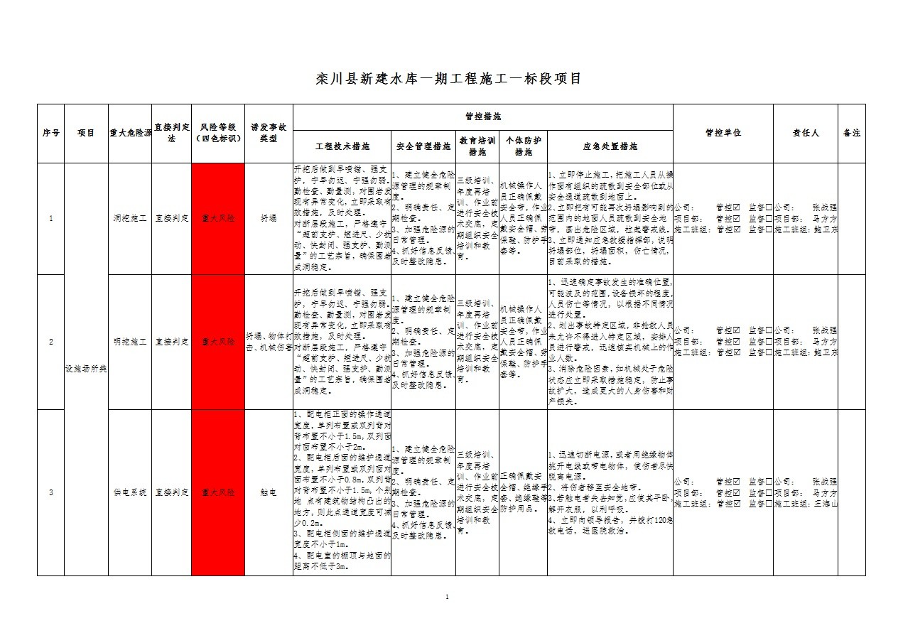2024年一季度在建項目重大危險源風險分級管控清單