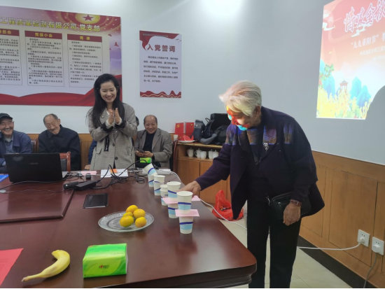 第三項(xiàng)是互動(dòng)游戲,《抽紙片》、《搶彩條》、《滾輪 大戰(zhàn)》。鍛煉退休老干部職工們的手腦協(xié)調(diào)能力、反應(yīng)能力、肢體協(xié)調(diào)能力和合作意識(shí),闖關(guān)成功的選手還有禮品獎(jiǎng)勵(lì)。大家踴躍參與,一張張笑臉隨處可見(jiàn)、一陣陣掌聲此起彼伏,現(xiàn)場(chǎng)變成了一片歡樂(lè)的海洋....整個(gè)活動(dòng)在歡聲笑語(yǔ)中落下帷幕。