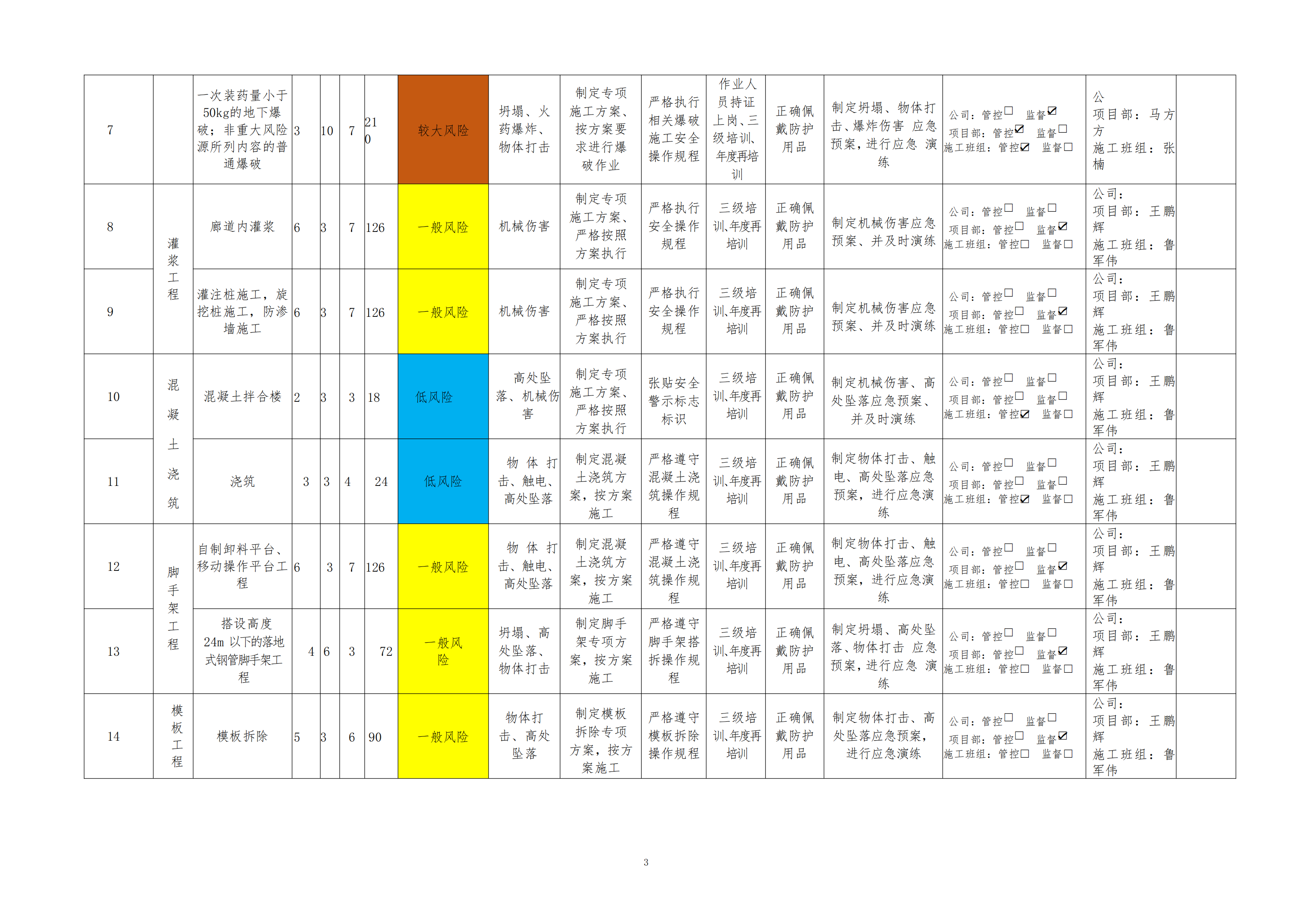 欒川縣新建水庫一期工程施工一標(biāo)段危險源風(fēng)險分級管控清單(5月)