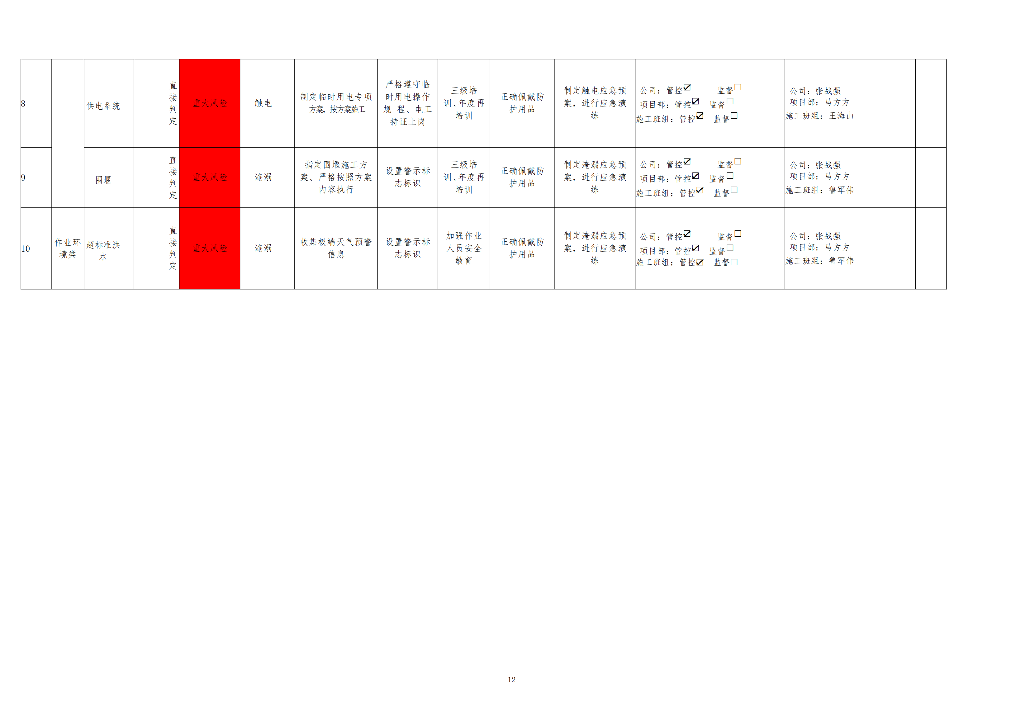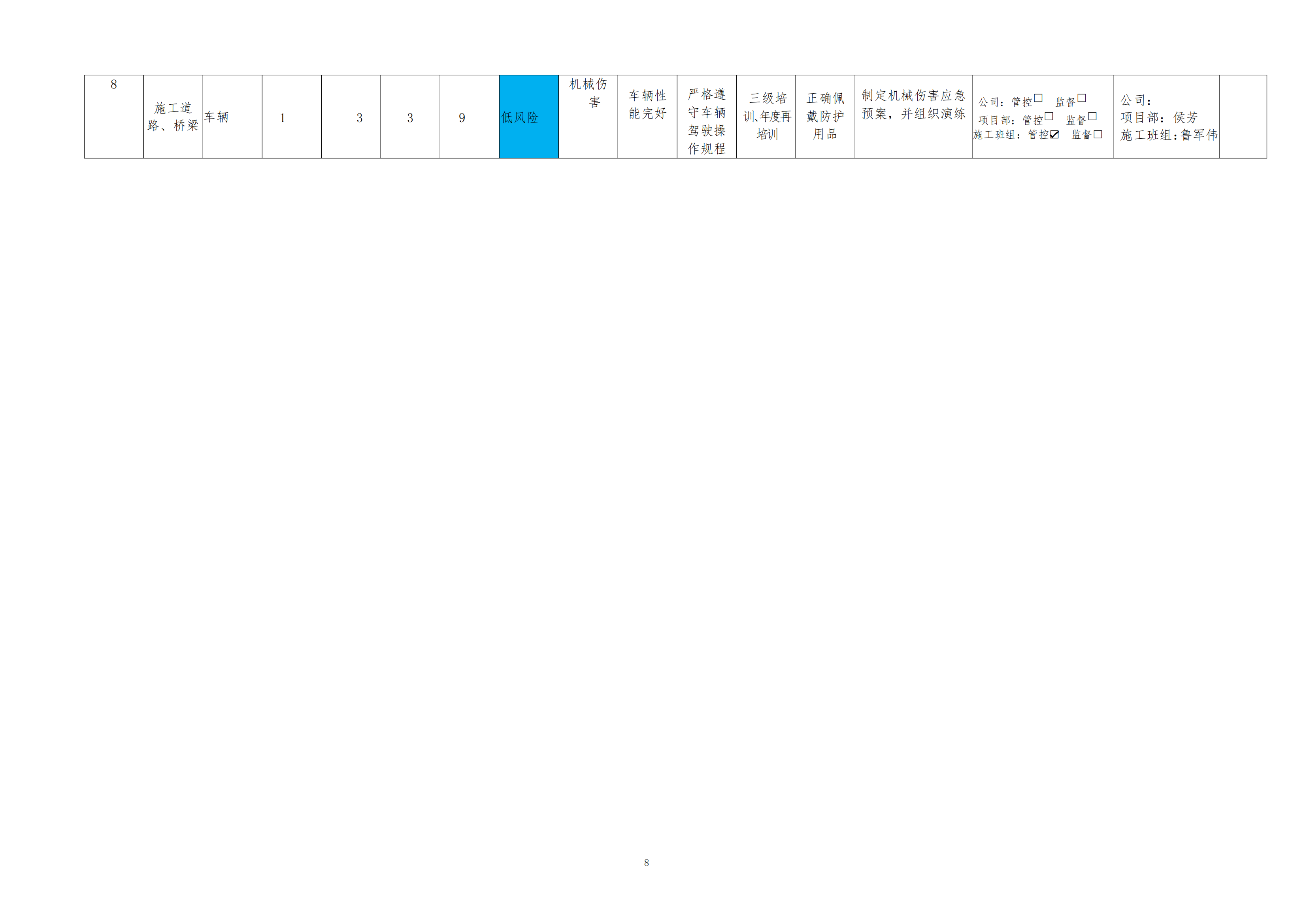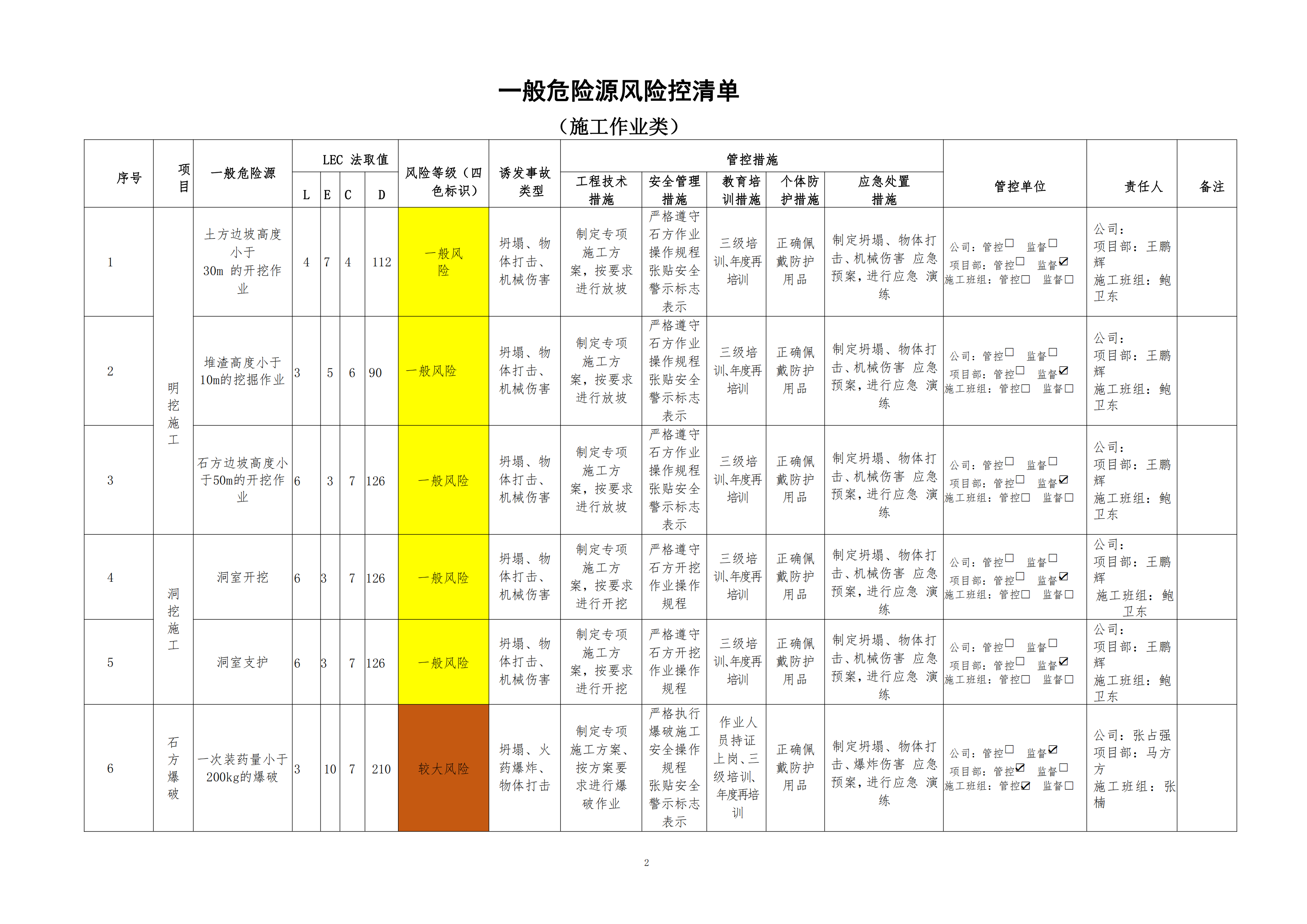 欒川縣新建水庫一期工程施工一標段危險源風險分級管控清單(7月)