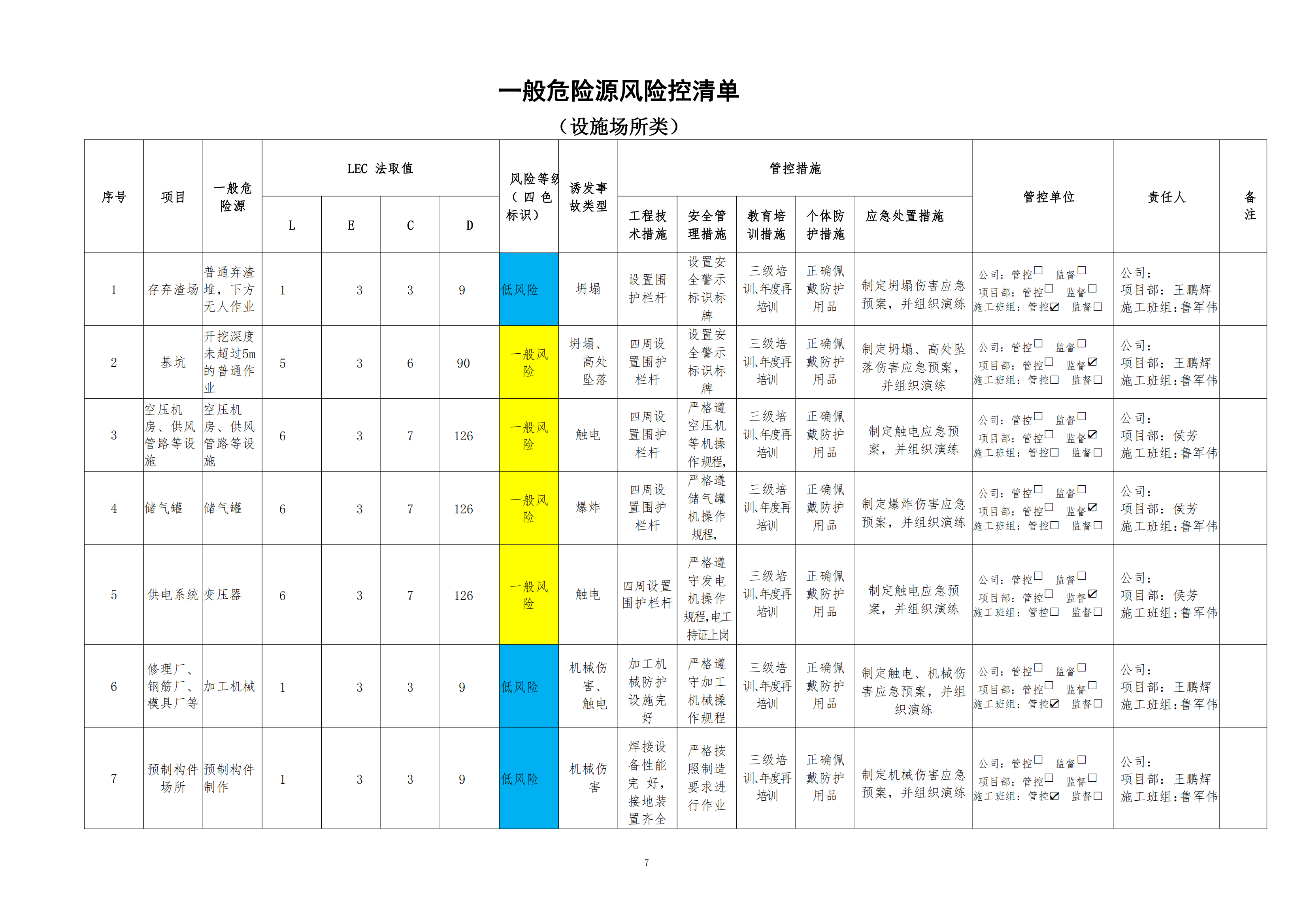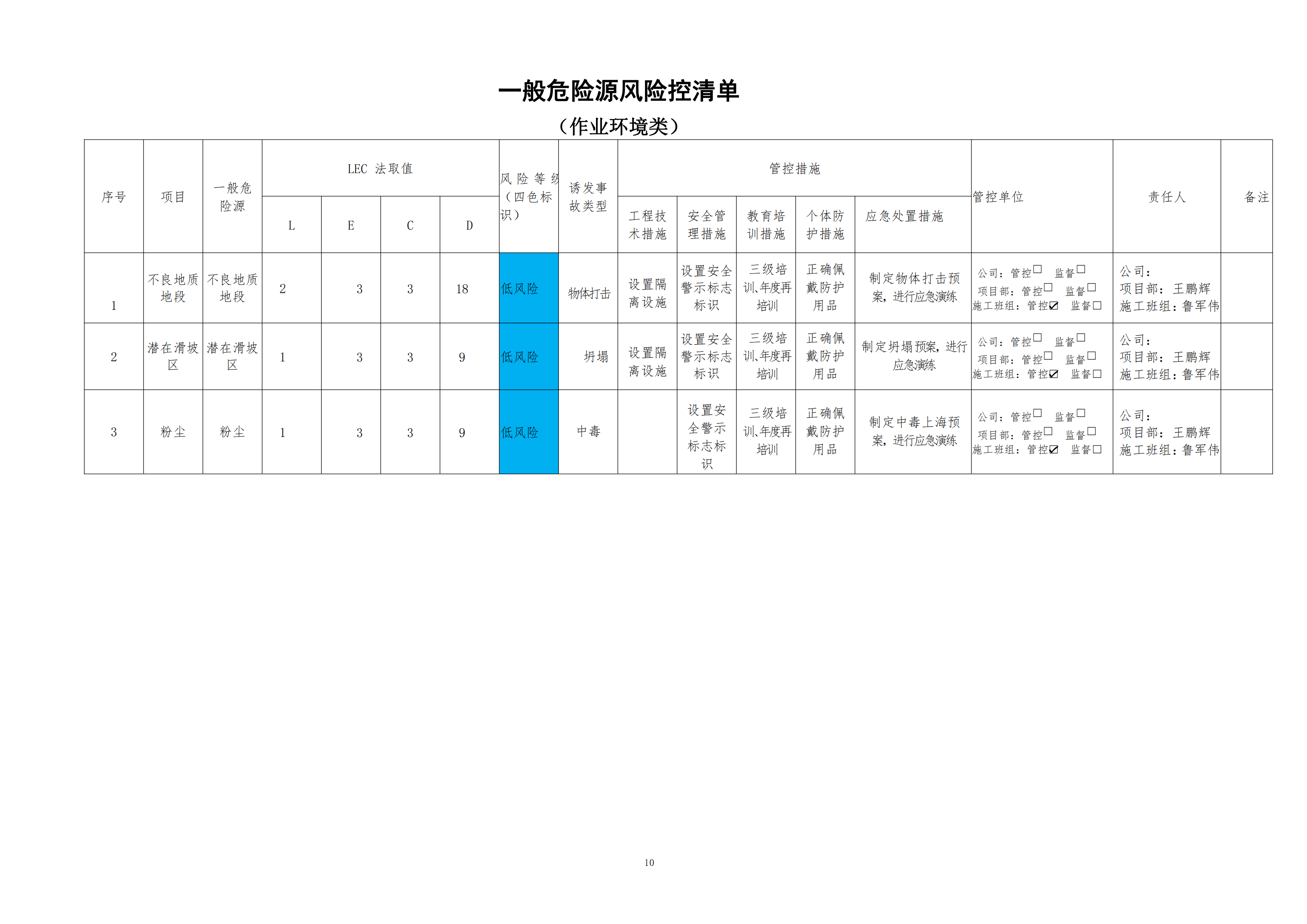 欒川縣新建水庫(kù)一期工程施工一標(biāo)段危險(xiǎn)源風(fēng)險(xiǎn)分級(jí)管控清單(9月)