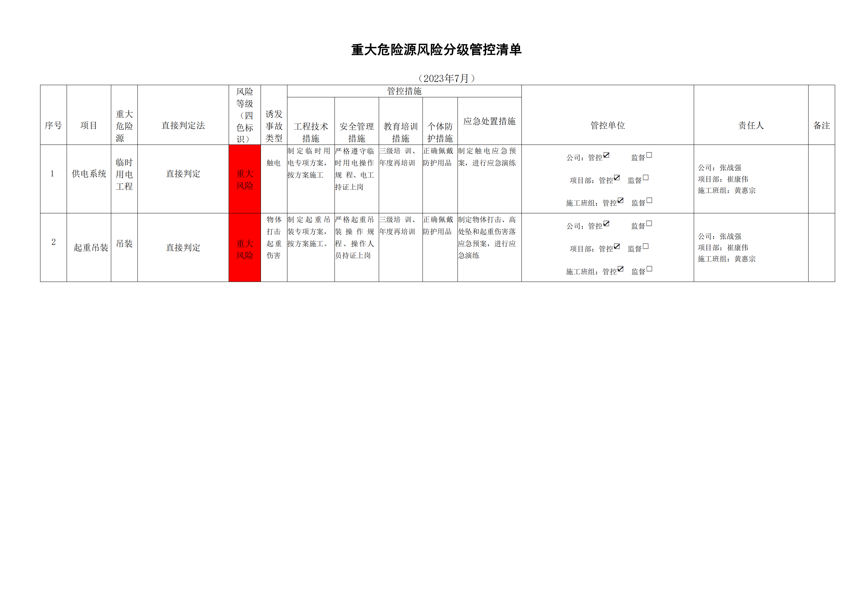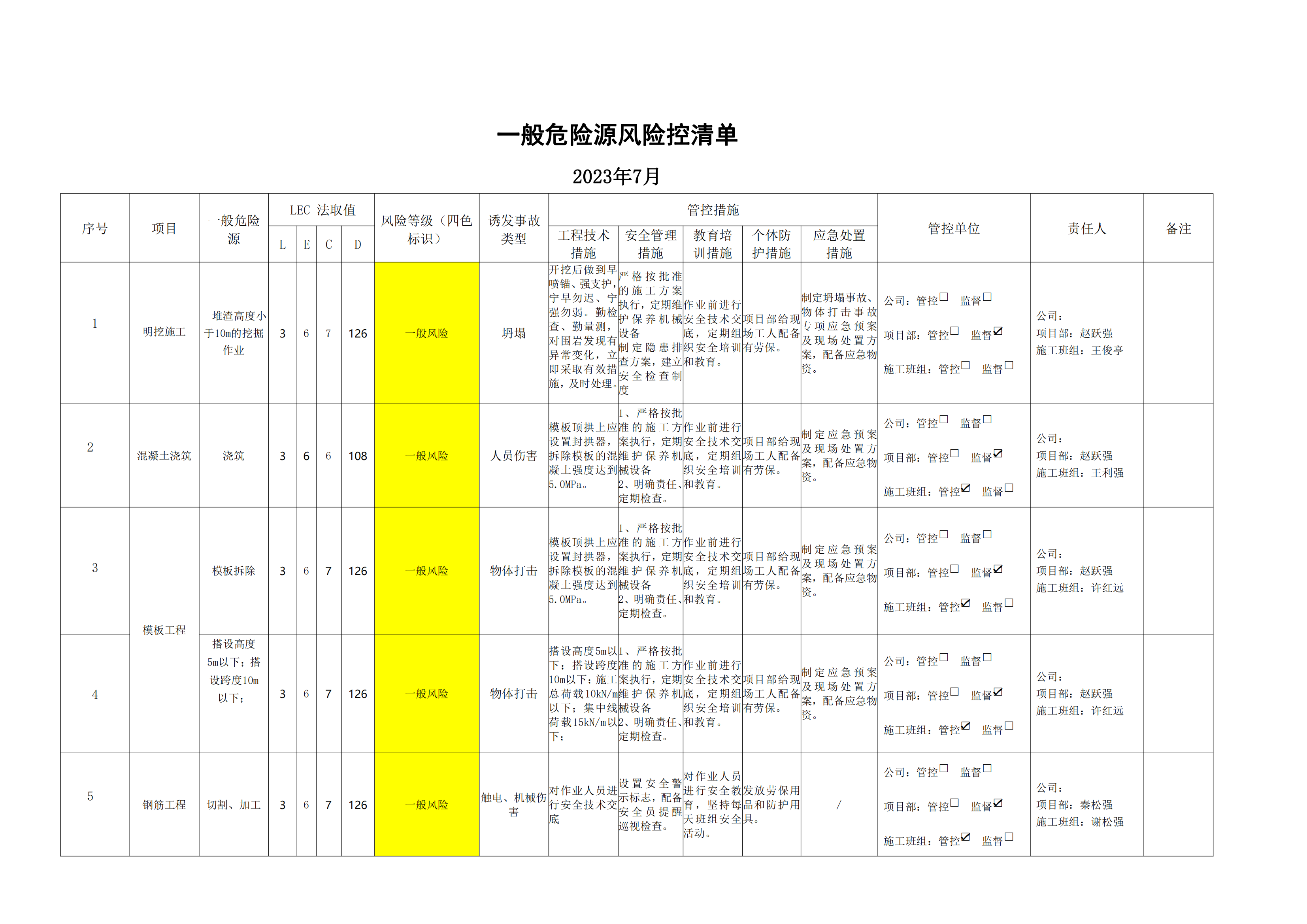 小浪底南岸灌區(qū)7標(biāo)項(xiàng)目危險(xiǎn)源風(fēng)險(xiǎn)分級(jí)管控清單(7月)