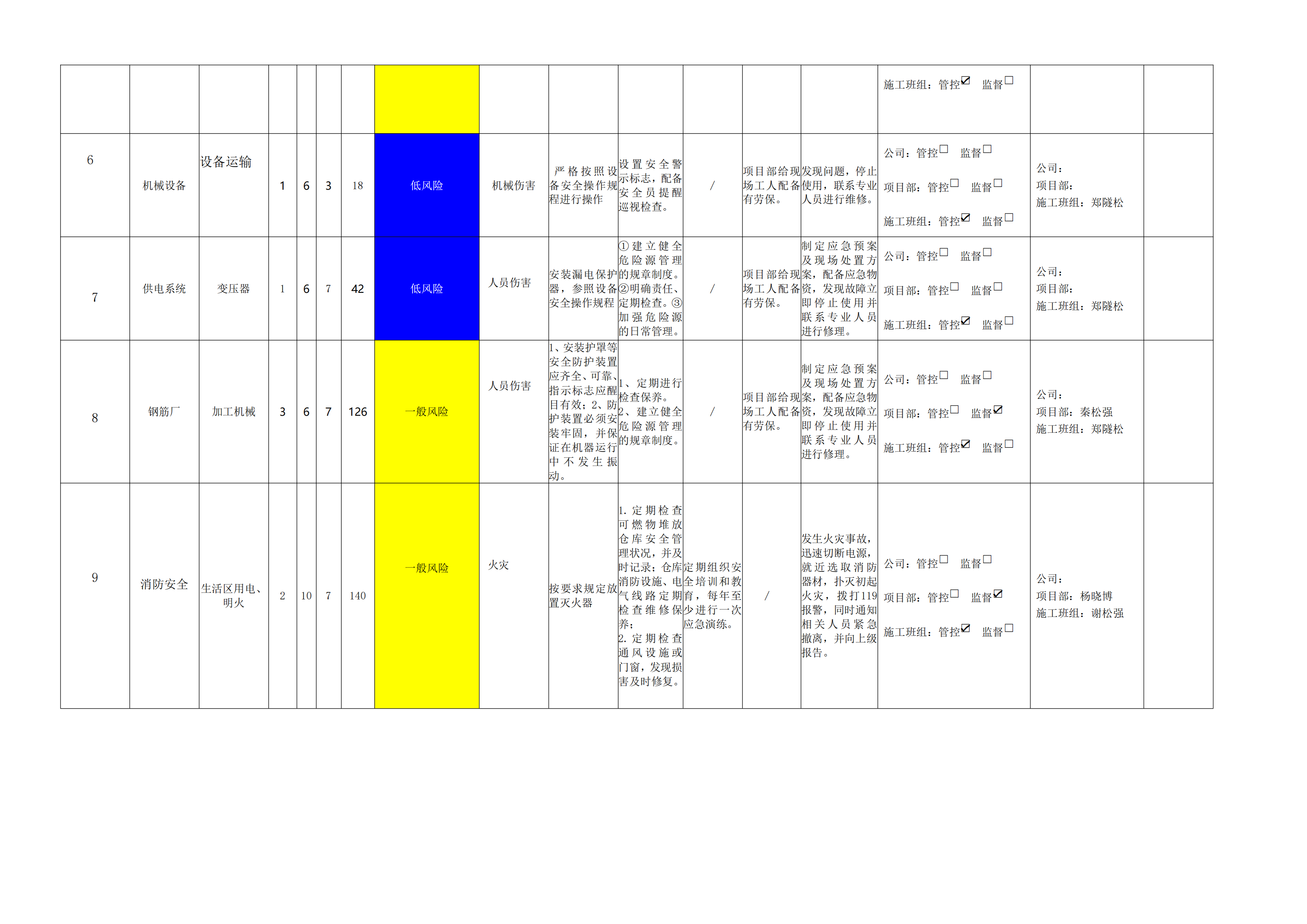 小浪底南岸灌區(qū)7標(biāo)項(xiàng)目危險源風(fēng)險分級管控清單(9月)