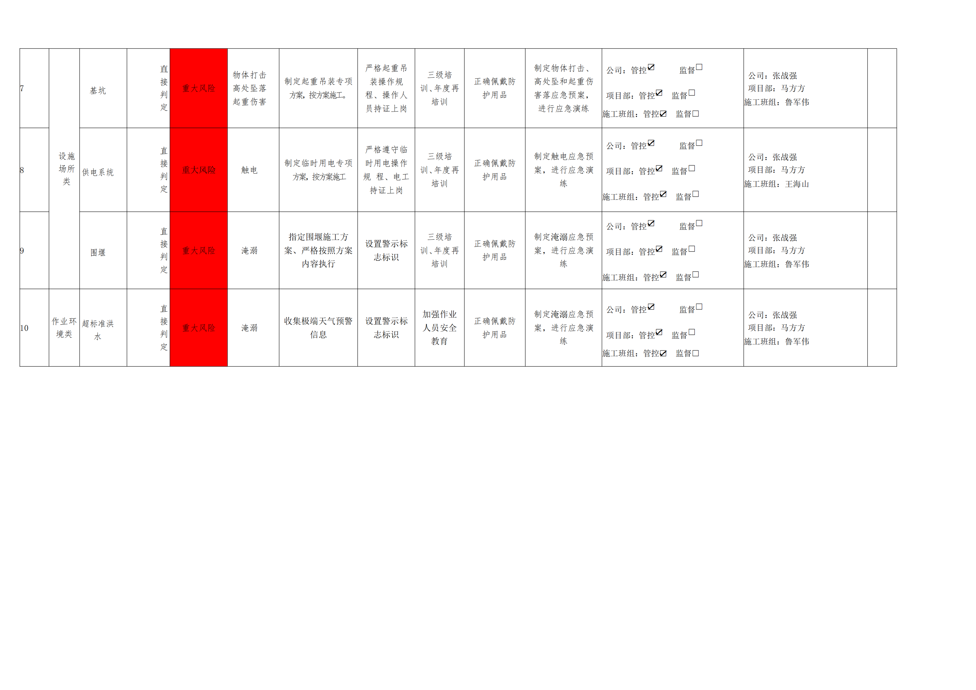 危險源風(fēng)險分級管控清單9月